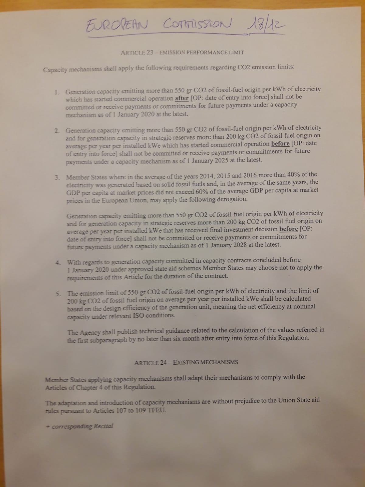 - Καμία υφιστάμενη μονάδα κάρβουνου που μπήκε σε εμπορική λειτουργία πριν τη θέση σε ισχύ του Κανονισμού δεν θα μπορεί να συμμετέχει σε ΜΔΙ μετά την 1η Ιουλίου 2025 το αργότερο.