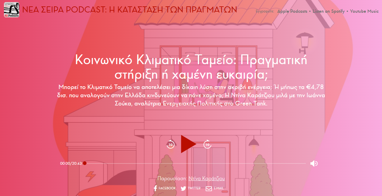In the latest episode of Lifo Podcasts titled “Social Climate Fund: Real support or a missed opportunity?”, Ioanna Souka, energy policy analyst at The Green Tank, talks with Dina Karatzou